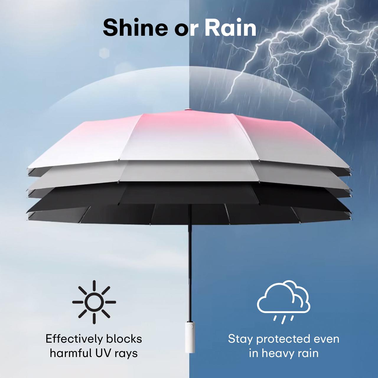 Stay stylish and protected in any weather with the Prime Pick Gradient Automatic Umbrella in Green! Designed for effortless one-touch operation, this umbrella opens and closes with a simple press, making it perfect for on-the-go convenience. Its windproof structure, UV-resistant fabric, and durable frame ensure long-lasting protection against rain and sun. The gradient design adds a modern, elegant touch, making it a must-have accessory for daily use.