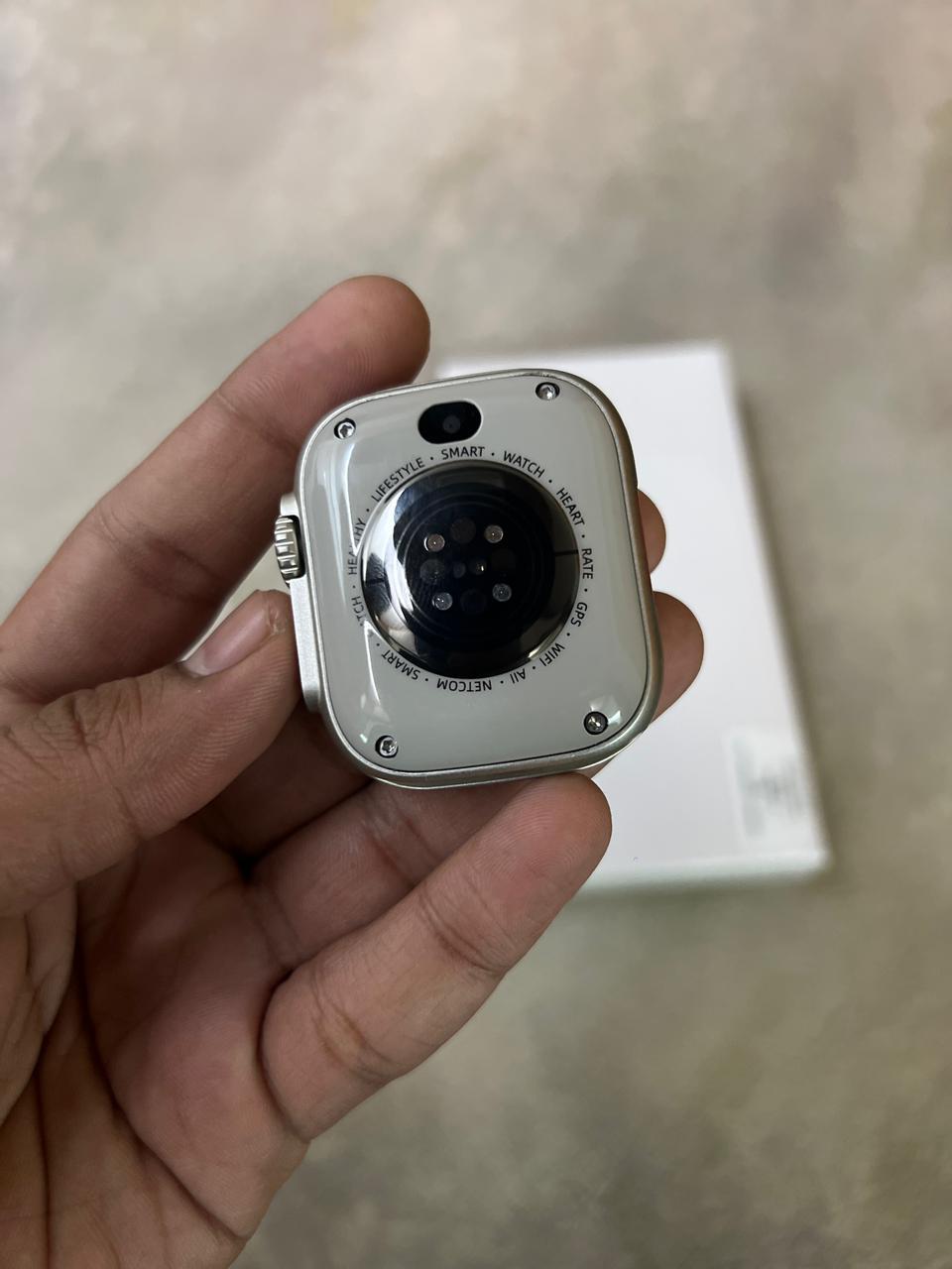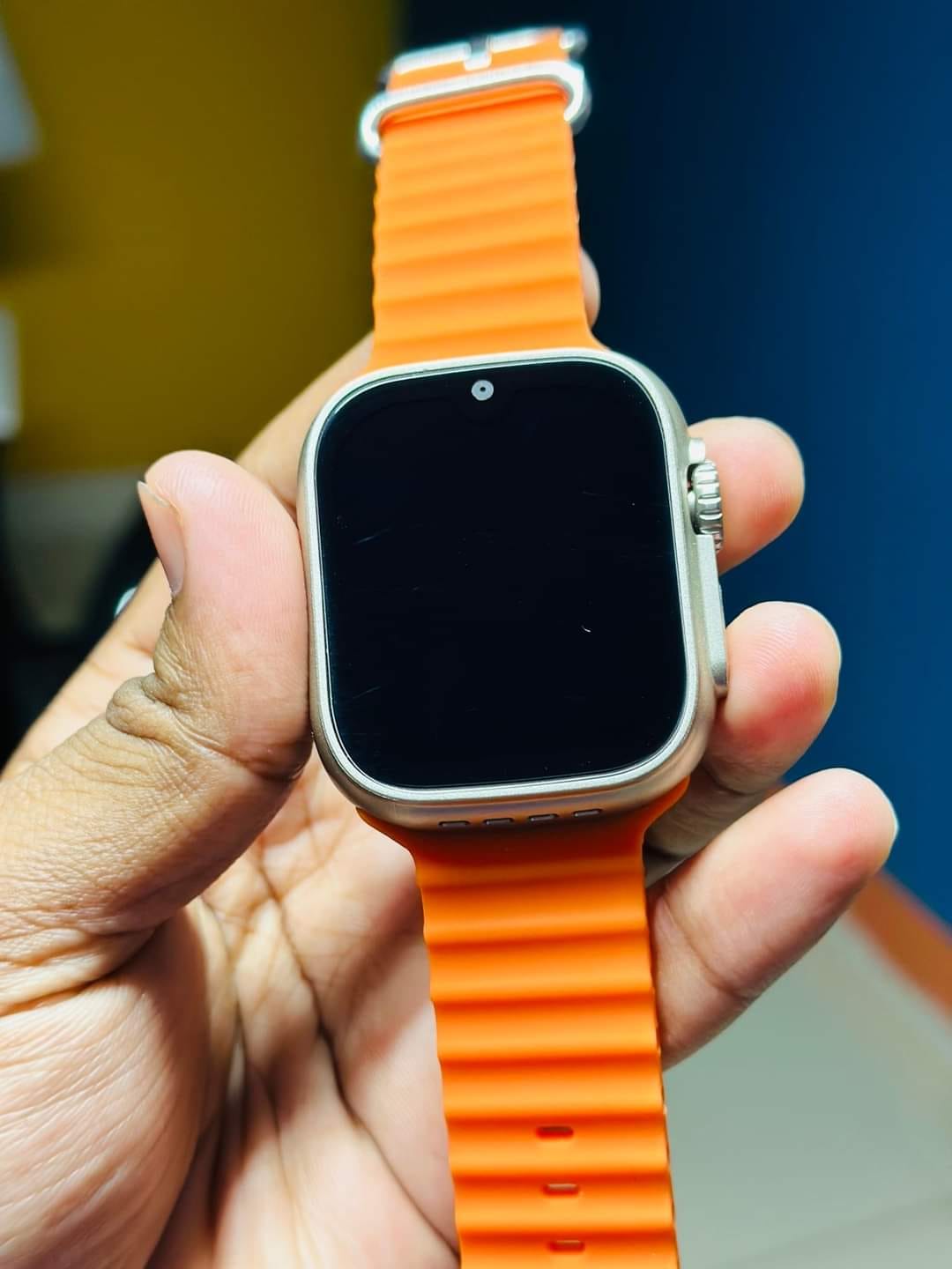 S9 Ultra Smart Watch 4G Android CAMERA Sim Card | Infinity 2.08inch Bezel Less HD Display | 4GB RAM / 16GB ROM | 4G/5G Sim Slot | Play Store Apps | | Realtime GPS | YouTube WhatsApp Facebook & Instagram Enabled | Android Games | Product Parameters S9 Ultra Smart Watch 4G Android Camera Sim Card (Orange) Mechanical Water Resistance IP67 Display Size 2.02″ Screen Type LED-Amoled Screen Cover Capacitive full touch screen Middle Frame Zinc Alloy Button Rotary Button Bottom Shell Material PC IML Wristband Material silica gel Body Size (L x W x H) mm 40.3*45.9*12.1 Hardware CPU RL8762DT/CW JL PPG Heart rate sensor HX3300 Pedometer SC7A20 Screen Capacitive full touch screen Screen Resolution 380*460 Memory 4GB RAM/ 16GB ROM BT version BT3.0 BLE5.1 Power Battery Life 3~4 Days, Standby 48 Days Battery Capacity 2000mAh Type of Battery Polymer lithium battery Charging Method Pin Slot Dock Charger Charging Time <1.5 hour APP OS Android Android 8.0.1 Feature 1. Zinc alloy Light Grey body with Silica gel Ocean Strap Band (Color As Per Availability: Orange) 2. Watch Ultra Series 8 Display: 20.8 LED AMOLED IPS 280*320 3. Android OS 8.0.1 4. HD Sim Calling 5, 4G/5G Sim Slot 6.Notification push and information sync 7. Messages Notification from Phone 8. Health detection: Real-time heart rate detection, Blood pressure detection, blood oxygen detection, sleep analysis, water clock, sedentary reminder, female physiological cycle 9.Sports track: Walking, running, climbing, riding, swimming, yoga, basketball and etc. 10. Other functions: find phone, music control, camera control, stopwatch, multi languages and etc. 11. Big battery 2000mAh, Normal use: 3-4days; Standby: 12days 12.Interchangeable watchband Specially Ocean Straps For Watch Ultra Series 8 13. Watch is Waterproof IP67 Rated 14. Model: S9 Ultra Smart Watch 4G 4 GREAT REASONS TO BUY S9 Ultra Smart Watch 4G FROM US